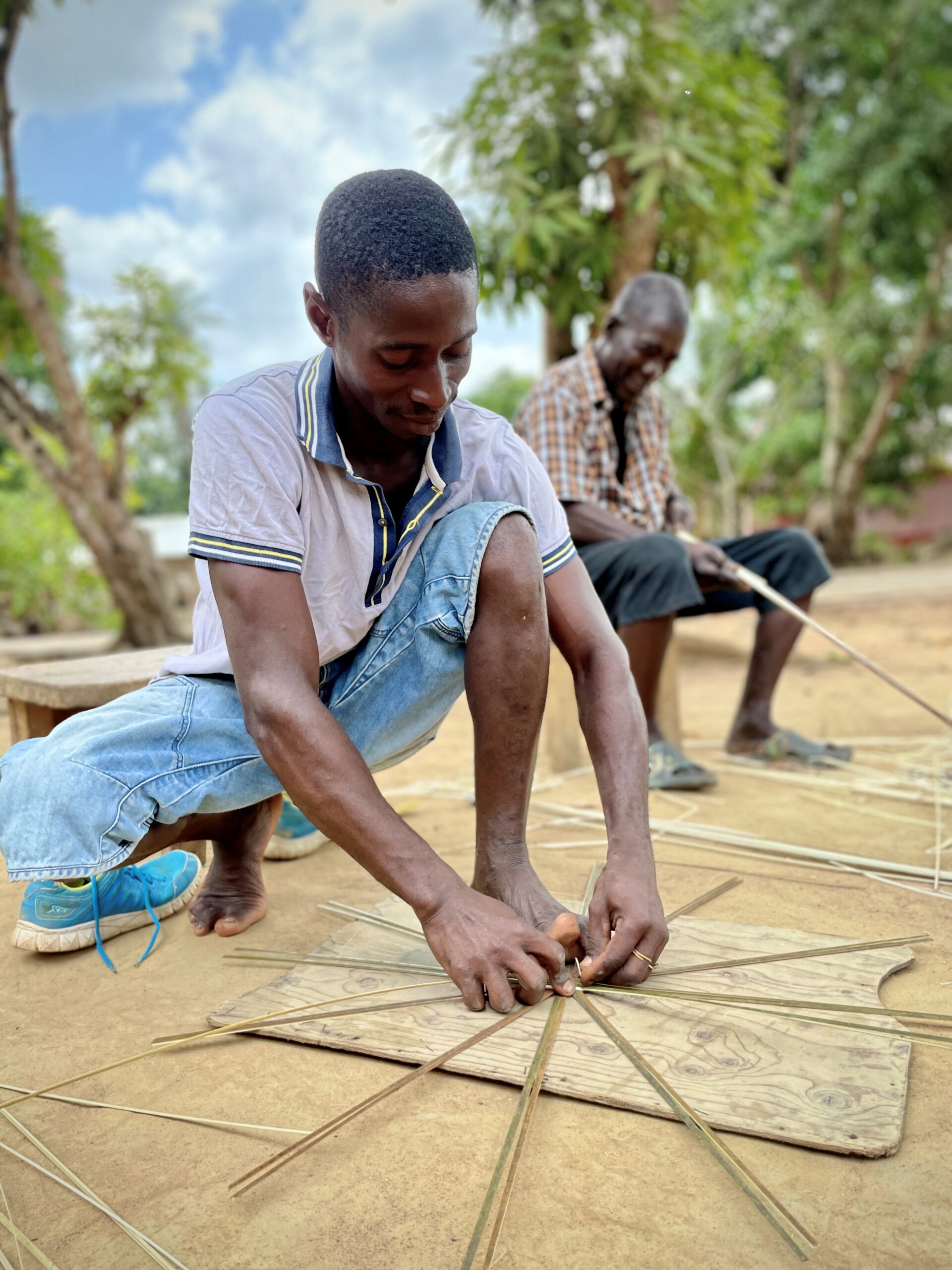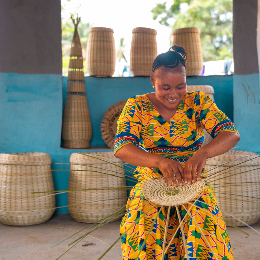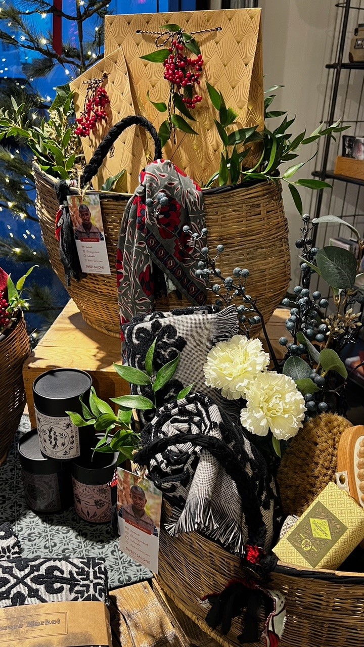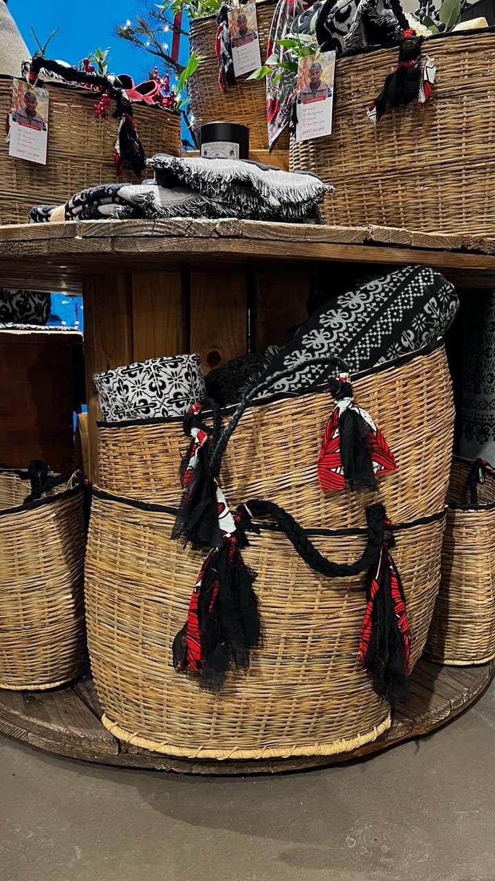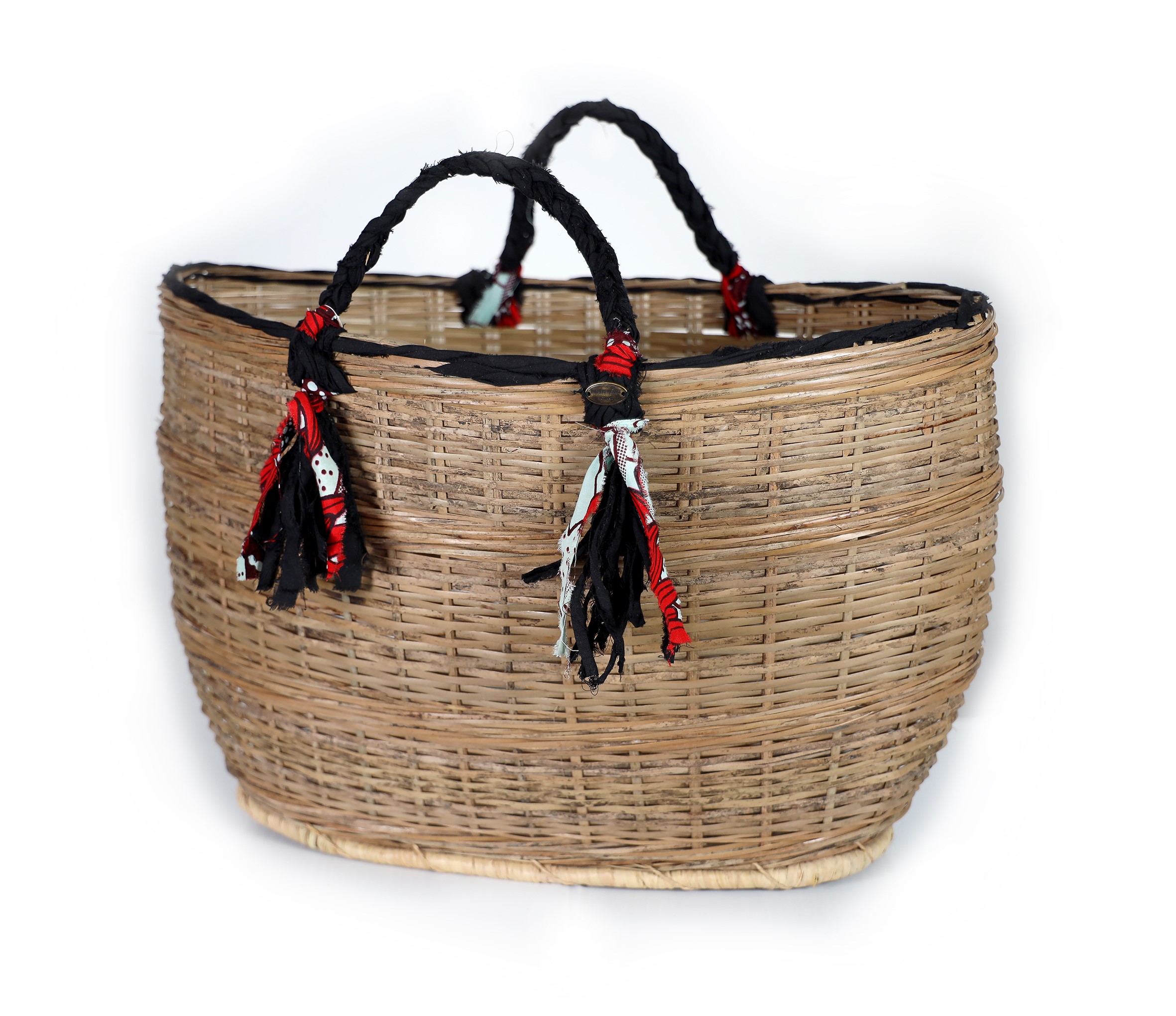 The renowned Icelandic brand Farmers Market collaborated with the skilled artisans of Brama Town to design this exquisite basket. Crafted with a blend of bamboo cane and local textiles, it offers a unique and stylish look.