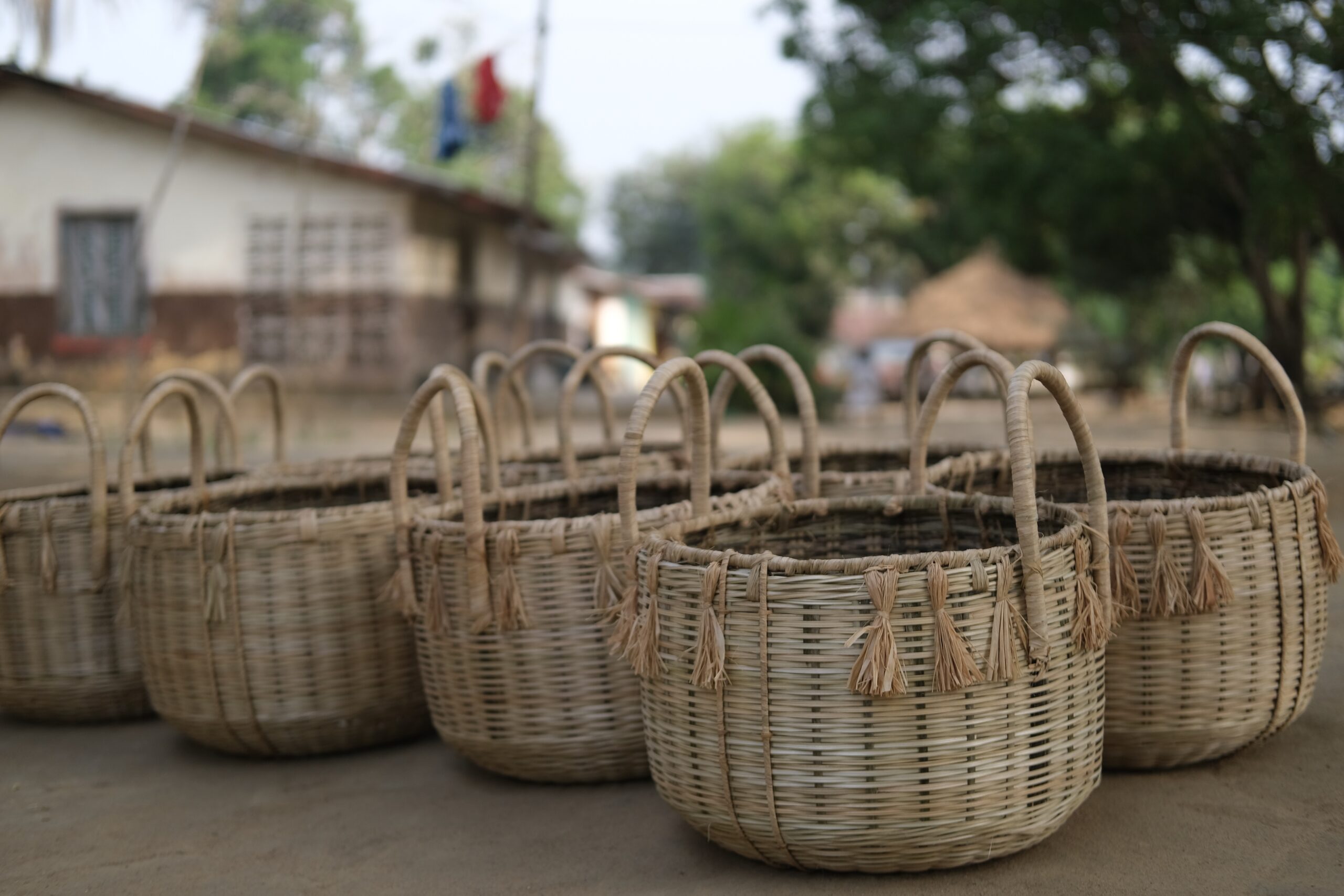Our journey begins with the sourcing of materials from the lush woods around Brama Town and neighboring communities. These natural treasures are acquired from locals who supply our weavers.