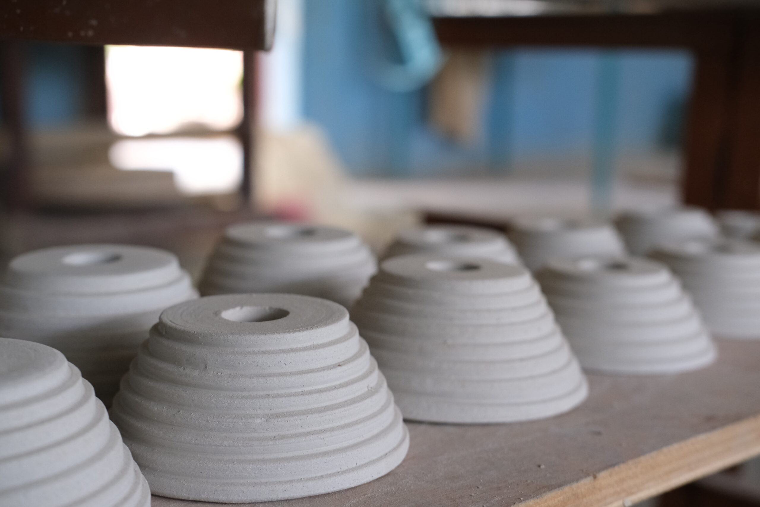 Our artisans shape each piece by hand on the kick wheel, patiently crafting the perfect form. Then begins the drying process, which can extend up to three weeks, influenced by weather conditions. Rainy season can be challenging, with high humidity levels affecting drying times.
