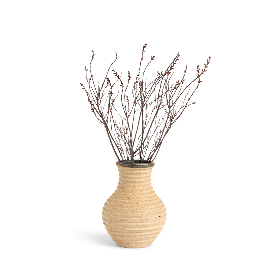 Discover the Snacks Vase in small and natural, a celebration of understated design. It adds warmth and character to your living environment. Designed by the Icelandic design team: Hugdetta Studio, brought to life by the master potters of the Lettie Stuart Pottery.